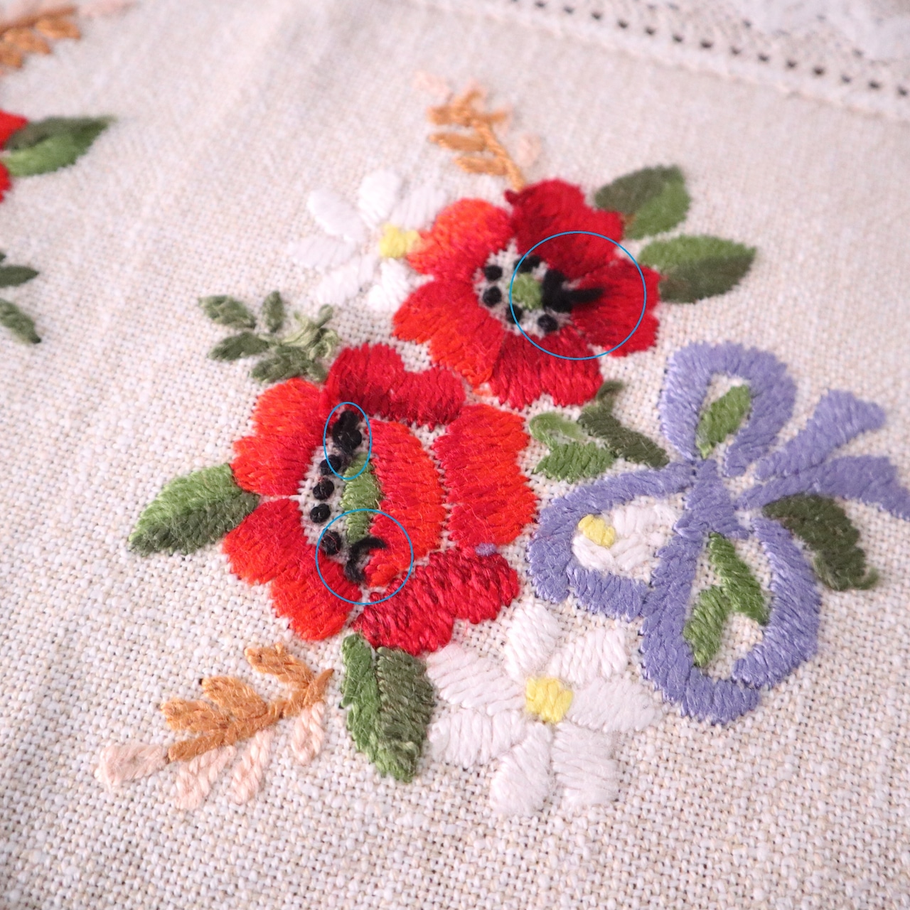 刺繍の最後の処理のところ少しあまく、糸が出てきている箇所があります。