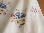 エーデルワイスやリンドウ、高山植物の手刺繍がほどこされたテーブルクロスです。