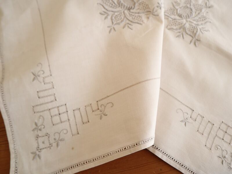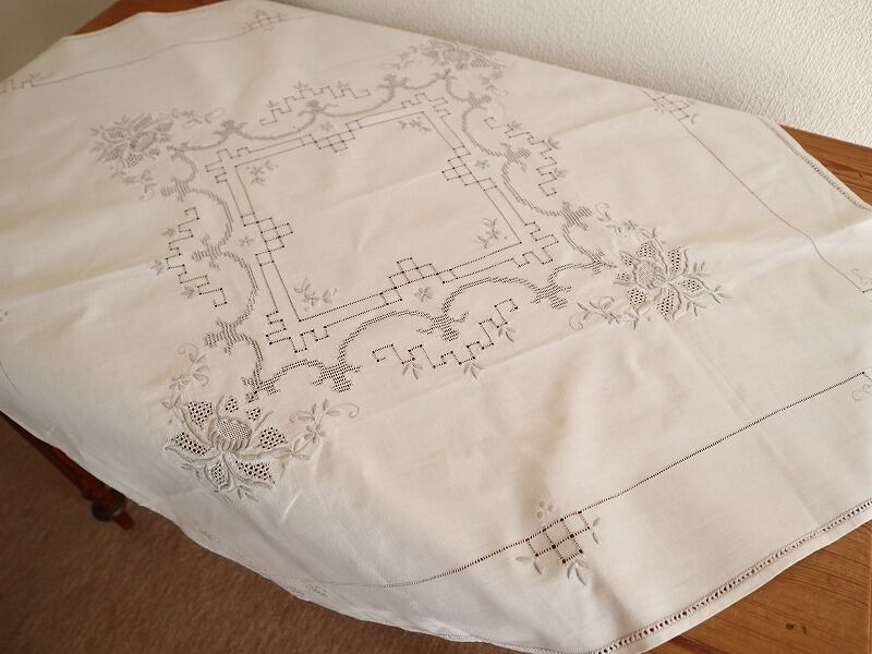 細やかなお花の手刺繍がほどこされたテーブルクロスです。