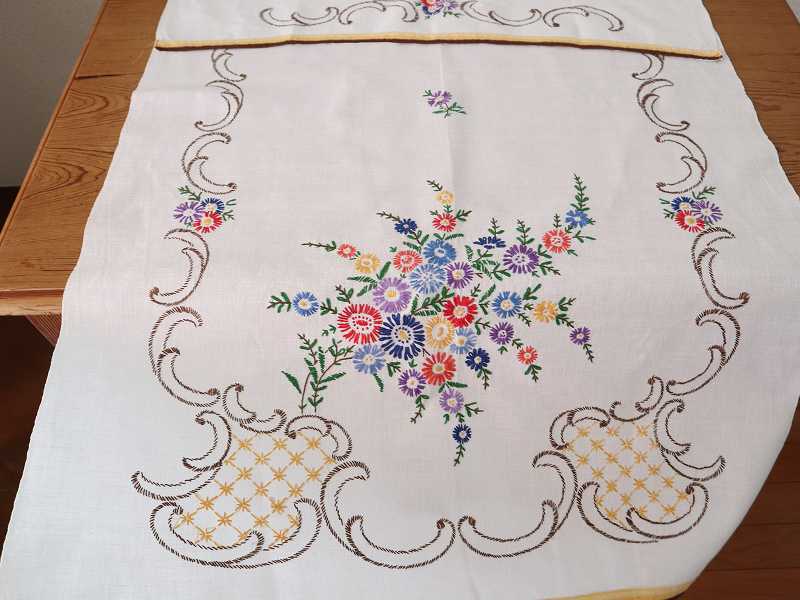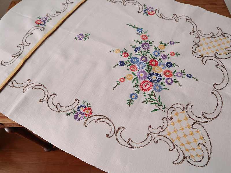 キッチンの飾りとして壁掛け・タペストリーのようにして使ったり、小窓のカーテン替わりに使ったりしていたそうです。